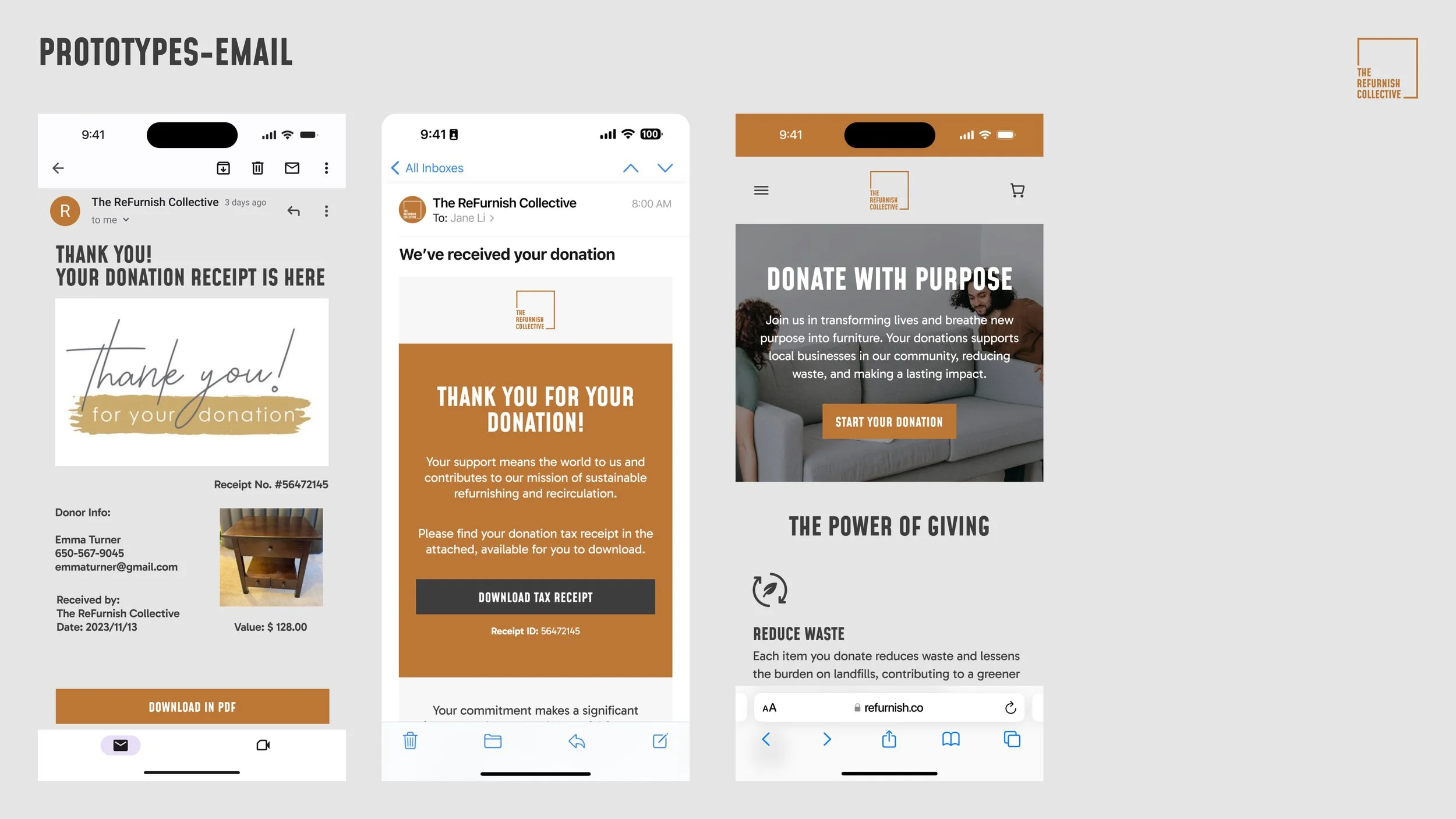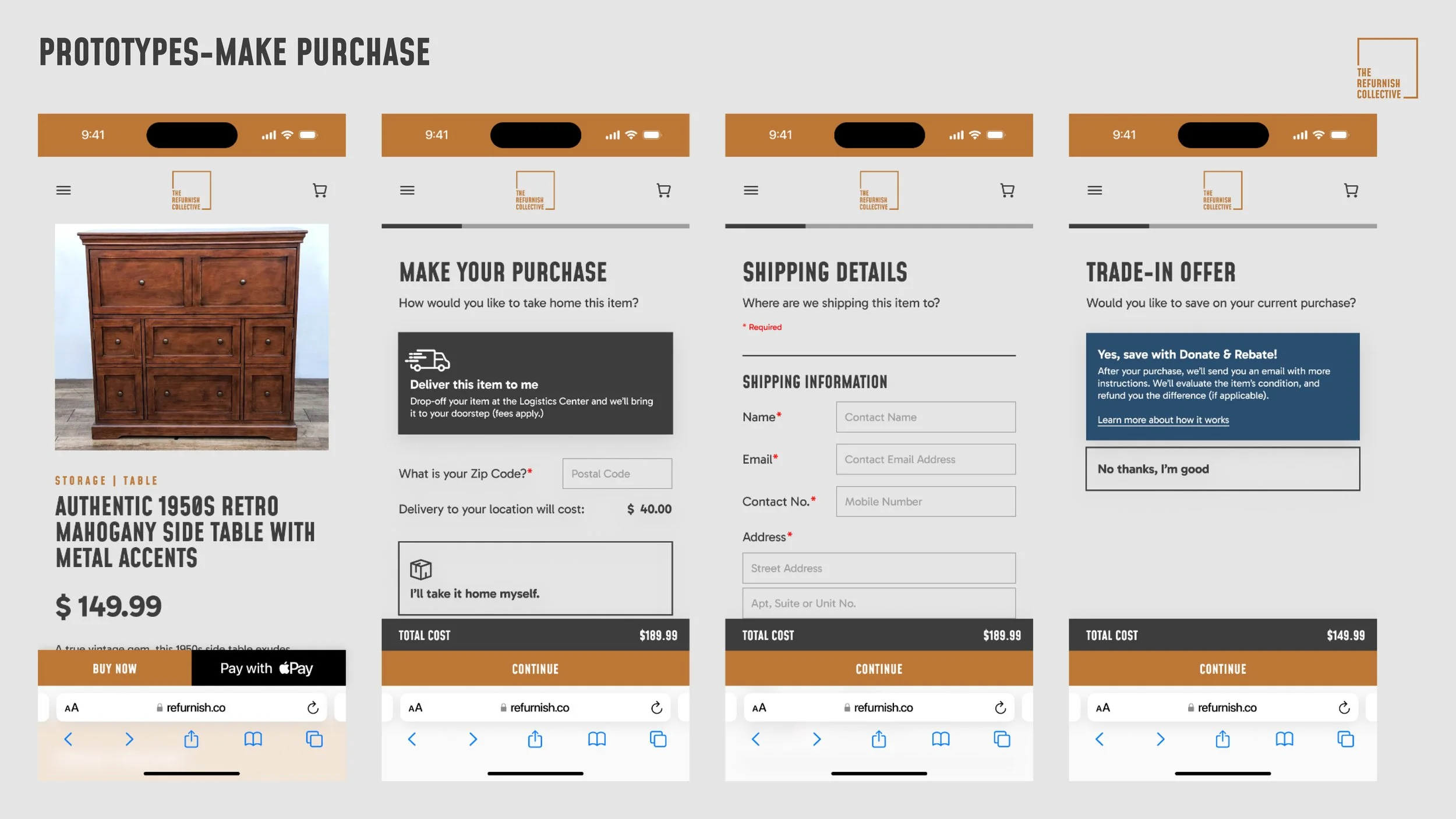 The item tags are a important part of the process for the customer and for The Refurnish Collective. It offers information about the item, the vendor who worked on it, and on some furniture items a donate and rebate ability.