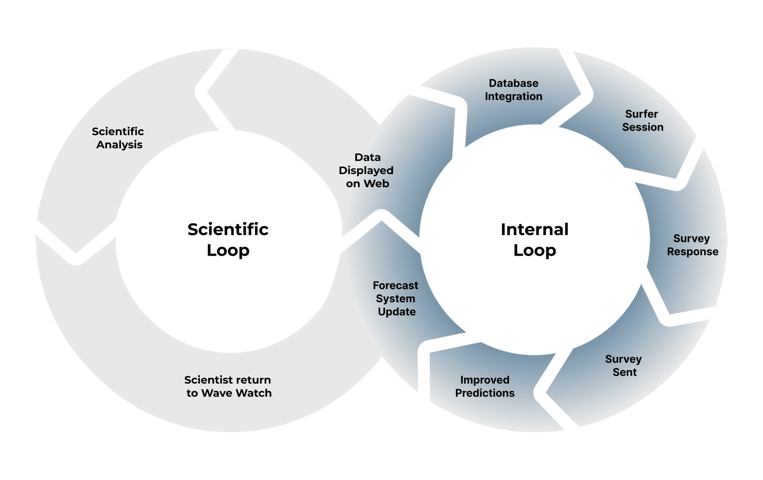 Wave Watch uses a feedback loop to collect scientific data and improve forecast conditions